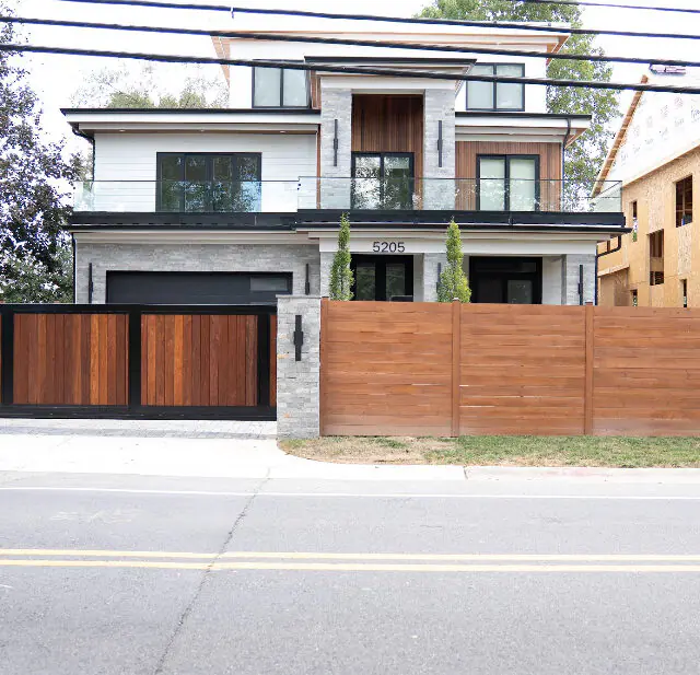 Modern farm-style gates blend rustic charm with clean, contemporary lines for a bold, upscale look. They offer durable functionality while enhancing curb appeal with a sleek, minimalist aesthetic.